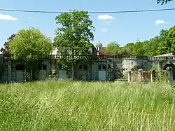 D'anciennes fontaines, des canalisations à dégueuloirs et un bassin encadrent l'orangerie.