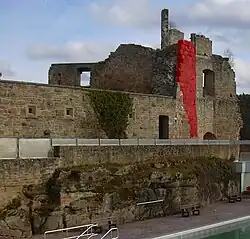 Zone d'entrée : aujourd'hui auberge de jeunesse, vestiges de ruines sur la droite