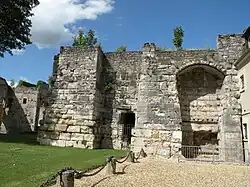 Les deux ruines qui suivent en direction de l'ouest sont les vestiges du château proprement dit. Elles s’appuient également contre la muraille gallo-romaine et sont partiellement visibles depuis le jardin du Roy, rue du Chat-Haret. Le premier corps de bâtiments est le plus important. En le contemplant depuis le sud, l'on voit au rez-de-chaussée un grand passage en arc brisé, qui devient bientôt plus étroit : c'était le principal accès vers les appartements royaux. À l'étage, l'on aperçoit un arc en plein cintre souligné de pointe-de-diamant et encadré par des colonnes engagées, qui conservent leurs chapiteaux sculptés. Un deuxième arc du même type est visible si l'on regarde la ruine depuis l'est. Ces deux arcades appartiennent à la tribune occidentale de la chapelle royale Saint-Denis, consacrée en 1142 et démolie au XIXe siècle, hormis cette tribune. En outre de la tribune, la chapelle comportait une deuxième travée et une abside en hémicycle, les deux de plain-pied. Le plan de la chapelle se divine encore au sol. La pièce derrière les deux travées disparues, contre le rempart, était le cellier. Il en reste une colonne ronde supportant deux arcs brisés. À gauche du cellier, suivaient les cuisines et leurs annexes. Le plafond était plat, comme le démontrent ses arrachements aux murs, toujours visibles.