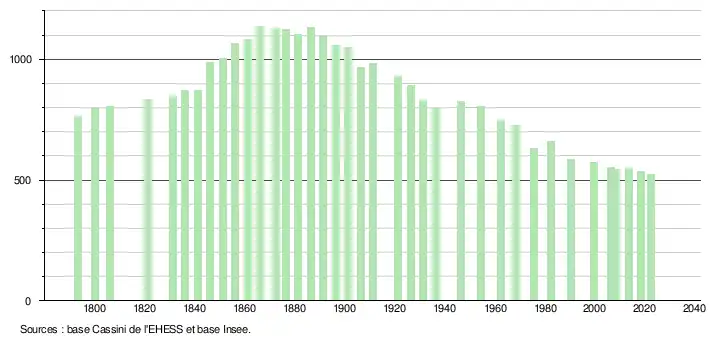 - ↑ Fiches Insee - Populations de référence de la commune pour les années 2006, 2007, 2008, 2009, 2010, 2011, 2012, 2013, 2014, 2015, 2016, 2017, 2018, 2019, 2020, 2021 et 2022.