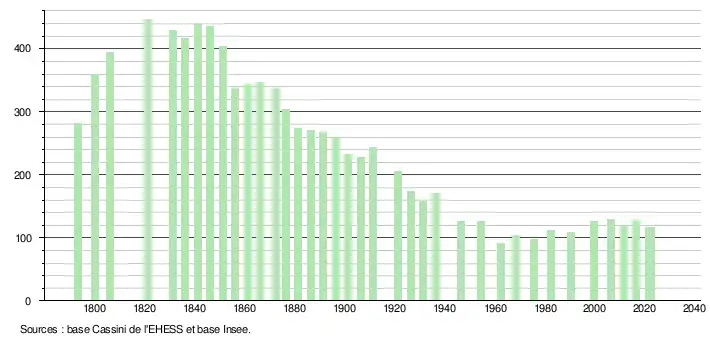 - ↑ Fiches Insee - Populations de référence de la commune pour les années 2006, 2007, 2008, 2009, 2010, 2011, 2012, 2013, 2014, 2015, 2016, 2017, 2018, 2019, 2020, 2021 et 2022.