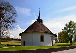 - L'Église protestante (temple) a été élevée par l'architecte bernois Abraham Dünz l'Aîné en 1667. Elle est le premier exemple en Suisse d'une église conçue pour le culte protestant dont le plan ovoïdal s'inspire du Temple de Paradis construit à Lyon en 1564 et détruit peu après. Sur l'extérieur s'ouvrent quatre fenêtres à remplage et un portail de style Renaissance. L'intérieur est très dépouillé et ne comporte aucune division. Il est couvert par un toit en charpente soutenu par quatre piliers en bois.