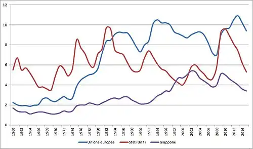 Les pays de l'Union européenne (et de l'Europe de manière plus générale) ont connu à partir des années 1970 des niveaux importants de chômage. La hausse a débuté à la suite des deux chocs pétroliers de 1973 et 1979.