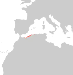 Cette espèce se rencontre dans le Nord-Est du Maroc et dans le nord-ouest de l'Algérie[1].