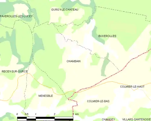 - ↑ « Orthodromie entre Chambain et Bure-les-Templiers », sur fr.distance.to (consulté le ).