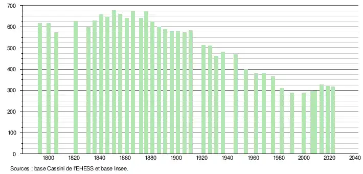 | Évolution des logements[27] | 1846 | 1851 | 1856 | 1861 | 1872 | 1876 | 1881 | 1886 | 1891 | 1896 | 1901 | 1906 | 1911 | 1921 | 1926 | 1931 |