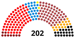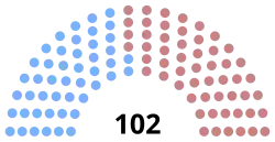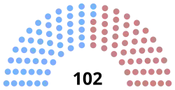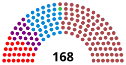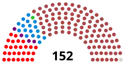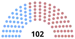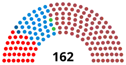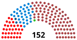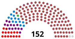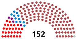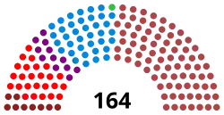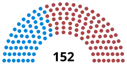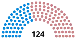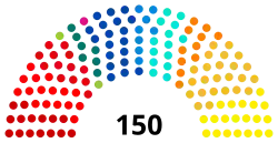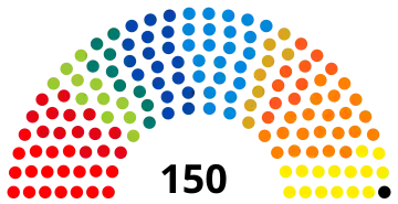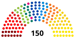 L'hémicycle se compose de 150 députés répartis en deux groupes linguistiques, un groupe linguistique francophone (62 sièges) et un groupe linguistique néerlandophone (88 sièges). Il n'y a pas de groupe linguistique germanophone et les représentants élus des circonscriptions électorales de langue allemande au sein de la Chambre sont rattachés au groupe francophone.