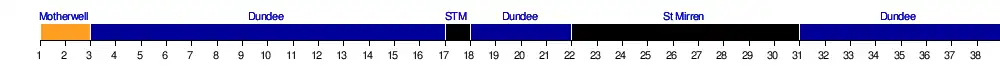 | Dundee FC | 2014 | 9 | Dens Park | 11 850 | Dundee |
