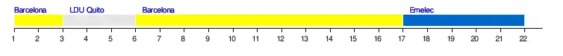 | Barcelona SC | 1-2 | 1-0 | 0-0 | 0-3 | 3-0 | 1-2 | 1-1 | 2-1 | 1-2 | 2-0 | 5-1 | |