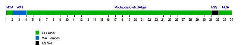 Le MC Alger fait son retour après dix ans d'absence en tête du championnat. En effet, le club algérois obtient la distinction honorifique de champion d'automne d'Algérie, avec trente-deux points au compteur et un match en moins. Son dauphin, la JS Kabylie, malgré un début de saison raté, parvient à se hisser à la seconde place.
