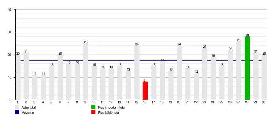 - Journée de championnat la plus pauvre en buts : 16e journée (8 buts).