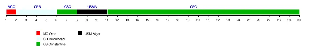 | 9 | USM Bel-Abbès -6* C | 37 | 30 | 11 | +1 |