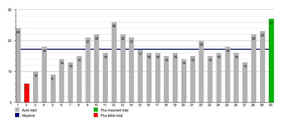 Plus grand nombre de buts marqués par une équipe sur l'ensemble des matchs joués à l'extérieur par les équipes en question lors de la phase aller;