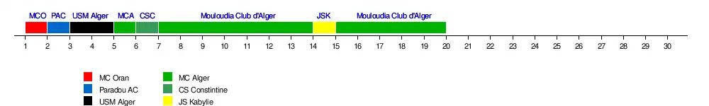 | MC Oran | 0-0 | 1-2 | 1-0 | 1-0 | 1-0 | 2-0 | 2-0 | 0-2 | MCEB | 2-1 | 1-0 | 2-0 | 1-0 | USMA | 0-0 | |