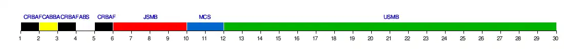 | USMB | 8 | 11 | 13 | 11 | 9 | 7 | 10 | 6 | 3 | 5 | 3 | 3 | 1 | 1 | 1 | 1 | 1 | 1 | 1 | 1 | 1 | 1 | 1 | 1 | 1 | 1 | 1 | 1 | 1 | 1 | 18 | |