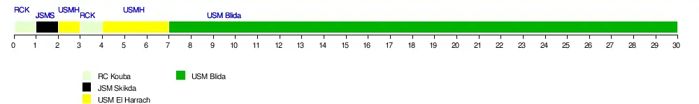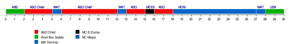 - ↑ ASO Chlef est devant WA Tlemcen en vertu des points en confrontations directes (4pts pour ASO Chlef face 1pts pour WA Tlemcen).