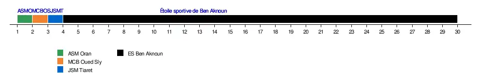 | ES Ben Aknoun | 1-0 | 1-1 | 2-0 | 3-0 | 0-0 | 0-0 | 3-1 | 1-0 | 2-1 | 1-0 | 1-1 | 3-0 | 4-1 | 3-1 | 2-1 | |