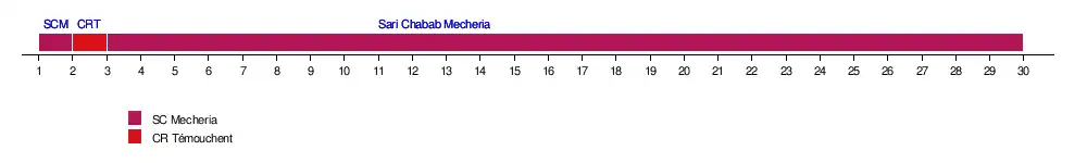 | SC Mecheria | 2-3 | 0-1 | 0-2 | 0-3 | 1-3 | 0-3* | 2-0 | 1-2 | 1-2 | 1-2 | 0-1 | 1-2 | 1-0 | 1-1 | 1-2 | |
