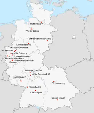 | VfL Bochum | Ruhrstadion | 31 328 | Bochum |