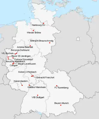 | VfL Bochum | Ruhrstadion | 31 328 | Bochum |