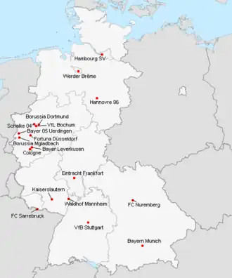 | Borussia Mönchengladbach | Bökelbergstadion | 34 500 | Mönchengladbach |