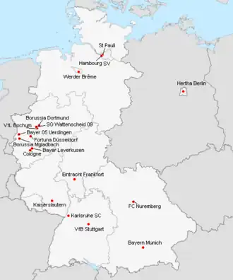 | FC Nuremberg | Städtisches Stadion | 56 500 | Nuremberg |