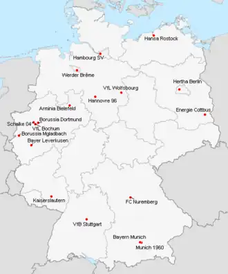 | VfL Bochum | Ruhrstadion | 31 328 | Bochum |