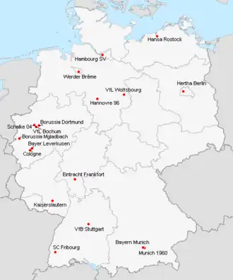 | Relégués en 2. Bundesliga | Eintracht Francfort FC Cologne Munich 1860 |