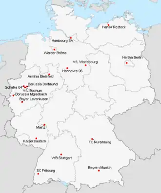 1. Le vainqueur et le finaliste de la DFB-Pokal ayant terminé dans les cinq premiers du championnat, le Bayer Leverkusen récupère une place en Coupe UEFA.