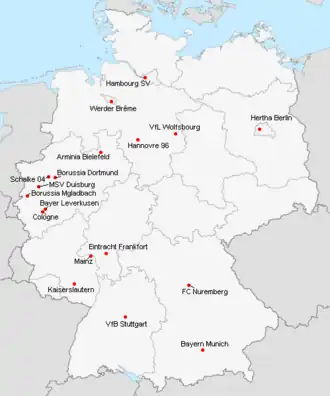 | Schalke 04 | Veltins-Arena | 61 673 | Gelsenkirchen |