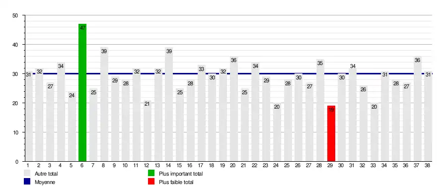 | Matchs joués | 380 + 2 barrages |