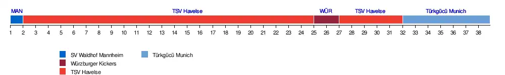 | Meppen | 19 | 10 | 10 | 7 | 13 | 9 | 10 | 13 | 15 | 15 | 12 | 14 | 11 | 9 | 3 | 3 | 2 | 5 | 5 | 3 | 4 | 6 | 5 | 5 | 7 | 8 | 8 | 9 | 11 | 11 | 10 | 11 | 12 | 12 | 12 | 12 | 12 | 12 |