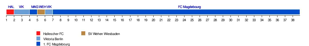 | Halle | 1 | 3 | 9 | 6 | 6 | 6 | 6 | 8 | 8 | 9 | 9 | 11 | 10 | 8 | 10 | 11 | 15 | 13 | 14 | 14 | 14 | 15 | 15 | 17 | 16 | 14 | 14 | 13 | 12 | 12 | 13 | 14 | 14 | 14 | 13 | 13 | 13 | 14 |