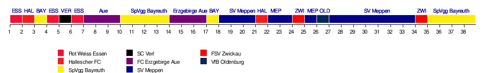 | Osnabrück | 5 | 7 | 11 | 12 | 13 | 12 | 15 | 14 | 13 | 11 | 12 | 13 | 16 | 14 | 15 | 13 | 10 | 9 | 8 | 8 | 7 | 5 | 7 | 4 | 4 | 4 | 5 | 6 | 4 | 6 | 6 | 6 | 5 | 5 | 5 | 6 | 3 | 3 |