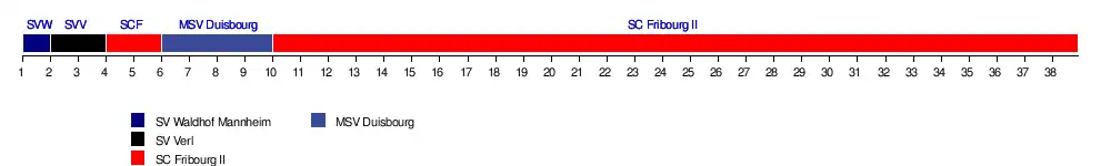 | Dortmund II | 12 | 6 | 8 | 12 | 15 | 9 | 5 | 10 | 5 | 6 | 7 | 4 | 8 | 10 | 10 | 13 | 10 | 12 | 9 | 11 | 12 | 11 | 9 | 10 | 6 | 4 | 4 | 5 | 7 | 9 | 10 | 11 | 12 | 10 | 10 | 10 | 11 | 11 |