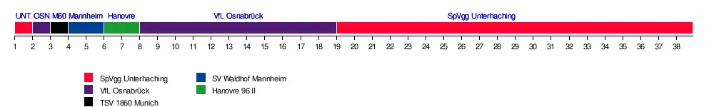 | Unterhaching | 20 | 13 | 17 | 10 | 10 | 10 | 14 | 14 | 18 | 19 | 19 | 19 | 19 | 19 | 18 | 19 | 19 | 19 | 20 | 20 | 20 | 20 | 20 | 20 | 20 | 20 | 20 | 20 | 20 | 20 | 20 | 20 | 20 | 20 | 20 | 20 | 20 | 20 |