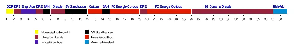 | Cottbus | 13 | 17 | 15 | 16 | 11 | 8 | 5 | 4 | 4 | 4 | 3 | 1 | 1 | 5 | 1 | 1 | 1 | 1 | 2 | 1 | 1 | 1 | 1 | 1 | 1 | 2 | 3 | 3 | 2 | 2 | 2 | 3 | 4 | 3 | 3 | 4 | 3 | 4 |