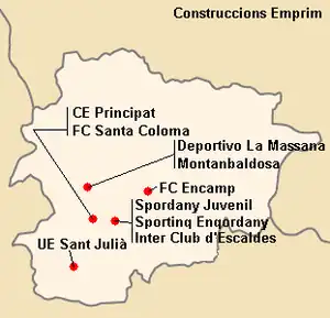 En raison du peu de nombre de stades se trouvant sur le territoire d'Andorre, les matchs sont joués exclusivement à l'Estadi Nacional d'Aixovall d'une capacité de 1 500 places.