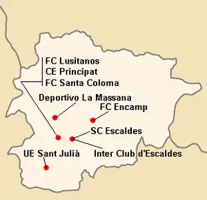 En raison du peu de nombre de stades se trouvant sur le territoire d'Andorre, les matchs sont joués exclusivement à l'Estadi Nacional d'Aixovall d'une capacité de 1 500 places.