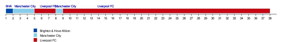 | Man. City | 4 | 1 | 1 | 1 | 1 | 2 | 2 | 2 | 1 | 2 | 2 | 2 | 5 | 4 | 4 | 5 | 7 | 7 | 6 | 6 | 6 | 5 | 4 | 5 | 4 | 4 | 4 | 5 | 5 | 5 | 6 | 5 | 5 | 4 | 3 | 4 | 3 | 5 | ||