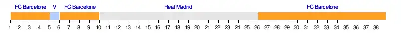 | FC Barcelone | 4-0 | 2-0 | 3-1 | 0-1 | 5-0 | 2-2 | 3-0 | 3-0 | 5-1 | 6-0 | 6-0 | 5-0 | 0-1 | 6-1 | 2-1 | 2-0 | 5-1 | 2-0 | 3-2 | |