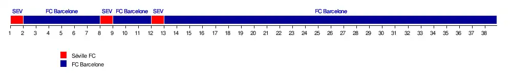 90+11e pour le Levante UD contre le Real Betis (3-0), le (1re journée). - Champion d'hiver: FC Barcelone