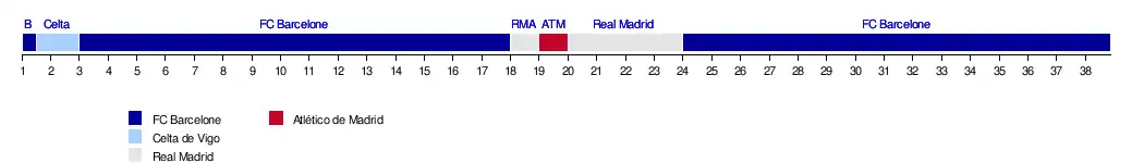 | FC Barcelone | 1-0 | 2-1 | 1-2 | 1-1 | 4-3 | 3-1 | 1-0 | 4-1 | 1-2 | 0-1 | 1-0 | 3-0 | 1-0 | 4-3 | 4-0 | 5-1 | 7-1 | 7-0 | 2-3 | |