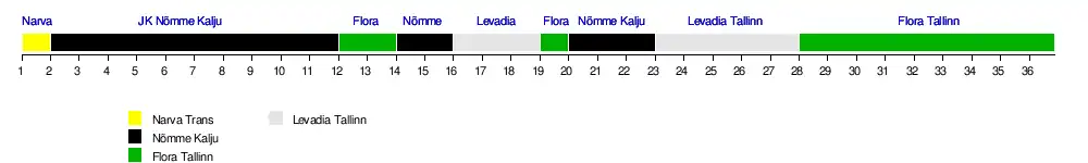 | Paide | 8 | 10 | 8 | 10 | 10 | 10 | 10 | 10 | 10 | 10 | 10 | 10 | 9 | 9 | 10 | 8 | 9 | 9 | 9 | 9 | 8 | 8 | 7 | 7 | 7 | 7 | 8 | 9 | 10 | 10 | 9 | 9 | 8 | 7 | 7 | 7 |