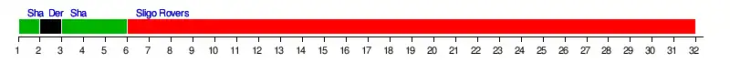 | Derry City FC | 3 | 1 | 5 | 3 | 4 | 5 | 6 | 6 | 5 | 6 | 6 | 5 | 4 | 5 | 5 | 5 | 5 | 7 | 6 | 7 | 7 | 7 | 5 | 5 | 5 | 5 | 7 | 7 | 8 | 6 | 5 | 5 | 5 | 1 | 0 |