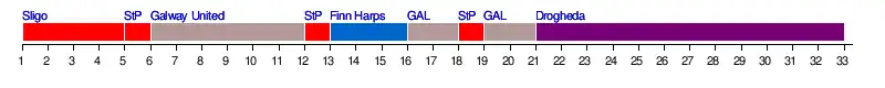 | Finn Harps | 9 | 8 | 9 | 8 | 8 | 6 | 7 | 9 | 7 | 8 | 9 | 10 | 12 | 12 | 12 | 8 | 8 | 8 | 8 | 9 | 9 | 8 | 8 | 8 | 9 | 10 | 9 | 10 | 11 | 11 | 11 | 11 | 11 |