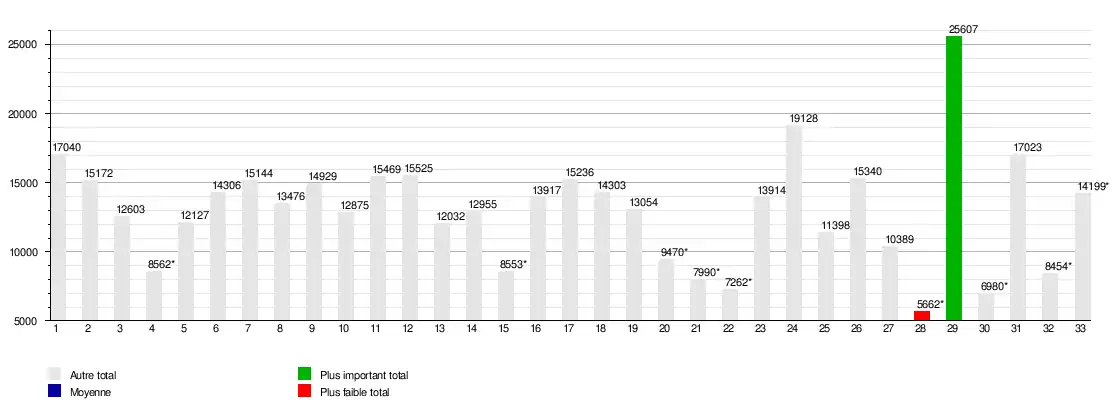 Ce graphique représente le nombre de spectateurs lors de chaque journée. Sont pris en compte l'ensemble des matchs du championnat, Premier Division et First Division additionnés soit dix rencontres par journées.