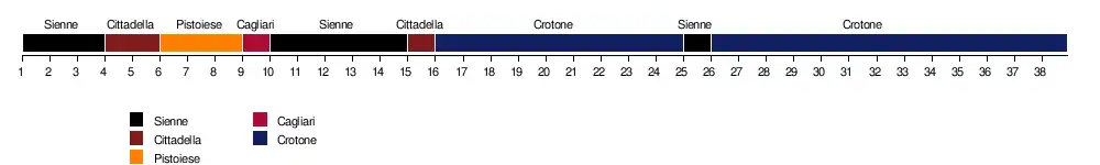 | AC Sienne | 0-0 | 1-1 | 1-0 | 0-1 | 0-1 | 2-0 | 2-1 | 1-1 | 0-1 | 1-0 | 0-1 | 2-1 | 1-1 | 0-0 | 2-2 | 2-1 | 0-4 | 0-3 | 2-4 | |