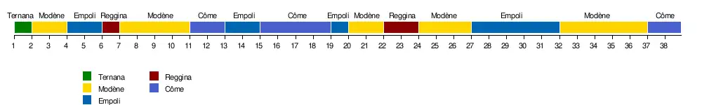 | Modène FC | 0-0 | 2-0 | 3-0 | 4-2 | 3-0 | 1-1 | 2-0 | 0-1 | 0-0 | 1-1 | 4-1 | 2-0 | 1-0 | 3-1 | 5-2 | 2-0 | 2-2 | 2-0 | 0-1 | |