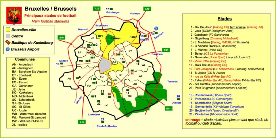 - ↑ Au niveau footballistique, la province de Brabant est toujours unitaire malgré sa partition territoriale en 1995.